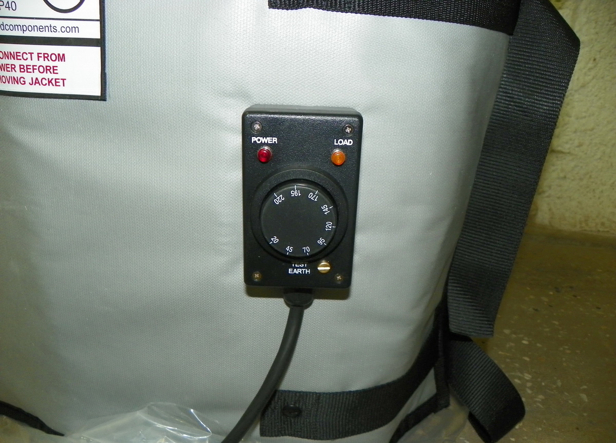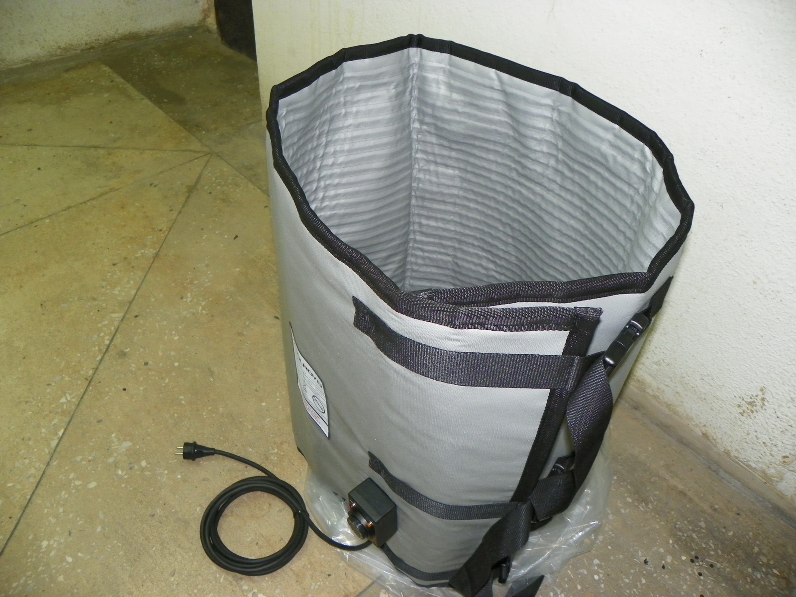 Nie zakrywa całkowicie pojemnik i może być dostarczony z dwoma różnymi termostatami w zakresie 0 – 120°C lub 20 – 220°C. Łatwe mocowanie do beczkę za pomocą tekstylnych pasków z karabińczykami.